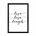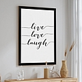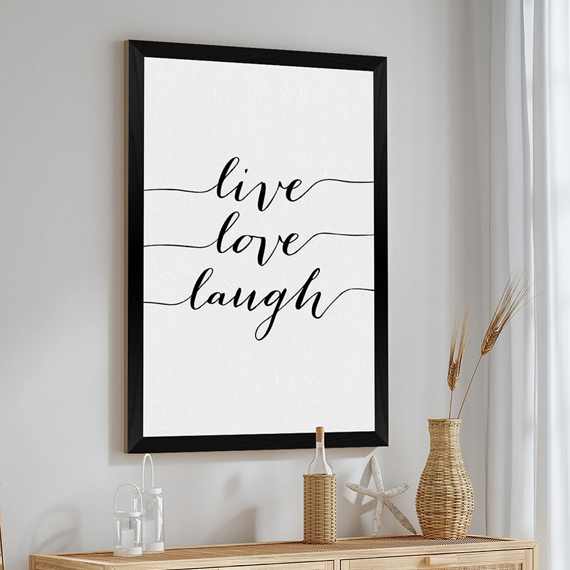 Ο πίνακας Elira είναι ένα σύγχρονο έργο τέχνης που προσφέρει θετική ενέργεια και στιλ στον χώρο σας. Με το διαχρονικό μήνυμα "live, love, laugh" σε μια κομψή μίξη χειρόγραφων και απλών γραμματοσειρών, δημιουργεί μια ζεστή και φιλόξενη ατμόσφαιρα. Το ασπρόμαυρο design, με τις οριζόντιες διαχωριστικές γραμμές, το καθιστά ιδανικό για να συμπληρώσει μια Scandi ή Modern Minimal διακόσμηση.