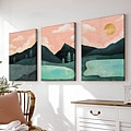 Ο τρίπτυχος πίνακας Anbel αποτυπώνει ένα ονειρικό, αφηρημένο τοπίο που θυμίζει σούρουπο ή αυγή. Δημιουργεί μια ατμόσφαιρα μυστηρίου και γαλήνης και είναι ιδανικός για όσους θέλουν να προσθέσουν μια ποπ χρώματος και μια ρομαντική, moody αισθητική στον χώρο τους.