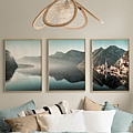 Μεταμορφώστε τον χώρο σας σε ένα ήρεμο καταφύγιο με το εντυπωσιακό τρίπτυχο Vynelle. Αυτό το σετ τριών πινάκων αιχμαλωτίζει τη δραματική ομορφιά των ορεινών και υδάτινων τοπίων. Οι ψυχροί τόνοι προσδίδουν μια αίσθηση γαλήνης και βάθους, ενώ η ποιότητα της εκτύπωσης δίνει ζωή στη θέα.