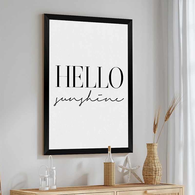 Ο πίνακας Arbiel είναι το ιδανικό κομμάτι για να ξεκινάτε τη μέρα σας με χαμόγελο. Το μήνυμα "HELLO sunshine" αποτυπώνεται σε μια ζωντανή μίξη μοντέρνας και χειρόγραφης γραμματοσειράς, προσθέτοντας μια φωτεινή και αισιόδοξη νότα στον χώρο. Η κλασική ασπρόμαυρη αισθητική του τον καθιστά ευέλικτο και ιδανικό για να δώσει μια νεανική πινελιά στην είσοδο, στο σαλόνι ή στο παιδικό δωμάτιο.