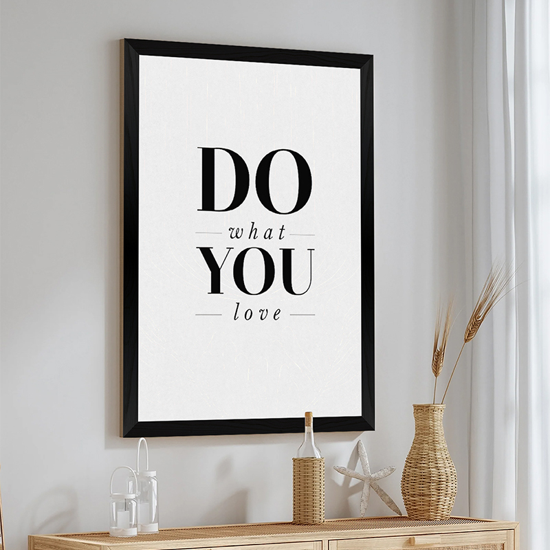 Ο πίνακας Venor είναι το ιδανικό έργο τέχνης για όσους αναζητούν έμπνευση και μια υπενθύμιση να ακολουθούν τα πάθη τους. Το μήνυμα "DO what YOU love" αποτυπώνεται με μια δυναμική μίξη γραμματοσειρών, όπου η λέξη "YOU" ξεχωρίζει έντονα. Η καθαρή, ασπρόμαυρη αισθητική και η έμφαση στη λέξη-κλειδί τον καθιστούν ιδανικό για γραφεία, χώρους εργασίας, ή οποιοδήποτε δωμάτιο χρειάζεται μια ενεργητική και μοντέρνα πινελιά.