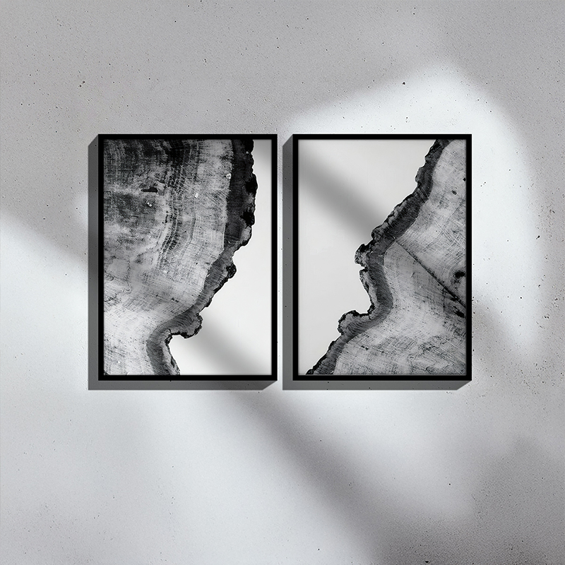 Αναζητήστε την τέχνη που αποπνέει φυσική δύναμη και διαχρονική κομψότητα. Το δίπτυχο Nepen I δεν είναι απλώς διακόσμηση, είναι μία αρχέγονη, αισθητική δήλωση που αναπαριστά τις υφές της Γης, όπως το εσωτερικό ενός ορυκτού ή ενός δέντρου. Κάθε φορά που το βλέμμα σας εστιάζει στις ρευστές, οργανικές καμπύλες και τις βαθιές, σκιερές λεπτομέρειες, νιώθετε μια αίσθηση πνευματικής ηρεμίας και απόλυτης φινέτσας. Το έργο συμβολίζει τη δύναμη της φύσης, τη διαχρονική αξία και τη γοητεία της απλότητας. Είναι η οπτική υπενθύμιση ότι ο μινιμαλισμός του Black & White μπορεί να είναι βαθιά εκφραστικός.