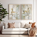 Αφήστε την απαλή, αιθέρια αίσθηση του πίνακα να γεμίσει τον χώρο σας με μια πνοή ηρεμίας και φρεσκάδας. Το δίπτυχο Menaz είναι μία αισθητική δήλωση που αναπαριστά μία αφηρημένη σύνθεση, όπου τα χρώματα ρέουν και μπλέκονται σαν ομίχλη πάνω από ένα πρωινό τοπίο. Κάθε φορά που το βλέμμα σας εστιάζει στους απαλούς, παστέλ τόνους, νιώθετε μια αίσθηση ελαφρότητας και απόλυτης χαλάρωσης. Το έργο συμβολίζει την ηρεμία, τη ρευστότητα και τη διακριτική γοητεία του μοντέρνου design.