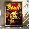 Ο πίνακας Loveser είναι ένα εντυπωσιακό, Pop-Art και δυναμικό έργο τέχνης που συγκρούει την κλασική ζωγραφική με την σύγχρονη κουλτούρα του Street Art και των Graffiti. Απεικονίζεται η κεντρική φιγούρα από το διάσημο έργο του Leonardo da Vinci, "Mona Lisa", η οποία καλύπτεται από μια κόκκινη σακούλα ή ύφασμα. Διατηρούνται τα κλασικά στοιχεία του πορτρέτου, ενώ πάνω στο έργο κυριαρχεί η φράση "BEAUTY IS INSIDE" (Η ομορφιά είναι μέσα) με μεγάλα, κίτρινα γράμματα.Είναι ιδανικός για να λειτουργήσει ως το κεντρικό σημείο εστίασης σε κάθε δωμάτιο, προσδίδοντας προσωπικότητα, ζωντάνια και έναν μοντέρνο/Colorful τόνο, με ένα ισχυρό μήνυμα ενδυνάμωσης.