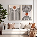 Αναζητήστε την τέχνη που γεμίζει τον χώρο με ηρεμία και μία αίσθηση μοντέρνας γοητείας. Το δίπτυχο Memoz δεν είναι απλώς διακόσμηση, είναι μία αισθητική δήλωση που παντρεύει επιτυχώς το minimal design με το boho-chic στυλ. Κάθε φορά που το βλέμμα σας εστιάζει στις επαναλαμβανόμενες αψίδες και τους κύκλους –μία δομή που εκπέμπει ισορροπία και συνέχεια– νιώθετε μια αίσθηση γαλήνης, οργάνωσης και δημιουργικής πληρότητας. Το έργο συμβολίζει την πρόοδο, τη σταθερότητα και τη γοητεία της απλής φόρμας. Είναι η οπτική υπενθύμιση ότι το στυλ κρύβεται στην αρμονία των γεωμετρικών σχημάτων.