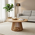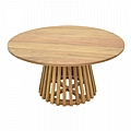 - Μοναδική Βάση "Ακτίνων": Το πραγματικό highlight αυτού του τραπεζιού είναι η κωνική του βάση, σχηματισμένη από κάθετες ξύλινες "πλευρές" ή "ακτίνες". Αυτό το ιδιαίτερο μοτίβο δημιουργεί ένα παιχνίδι φωτός και σκιάς, προσθέτοντας βάθος, υφή και μια μοντέρνα, αρχιτεκτονική πινελιά που το κάνει να ξεχωρίζει από οτιδήποτε άλλο.