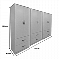 - Περιλαμβάνει εξι πόρτες, εσωτερικά φέρει ράγα για κρεμάστρες ενώ κάτω φέρει εξι μεγάλα συρτάρια για την αποθήκευση ρούχων και αξεσουάρ.