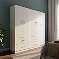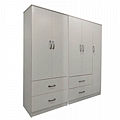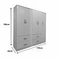 - Περιλαμβάνει πέντε πόρτες, εσωτερικά φέρει ράγα για κρεμάστρες και ράφια ενώ κάτω φέρει τέσσερα μεγάλα συρτάρια για την αποθήκευση ρούχων και αξεσουάρ.