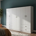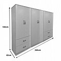 - Περιλαμβάνει εξι πόρτες, εσωτερικά φέρει ράγα για κρεμάστρες ενώ κάτω φέρει τεσσερα μεγάλα συρτάρια για την αποθήκευση ρούχων και αξεσουάρ.