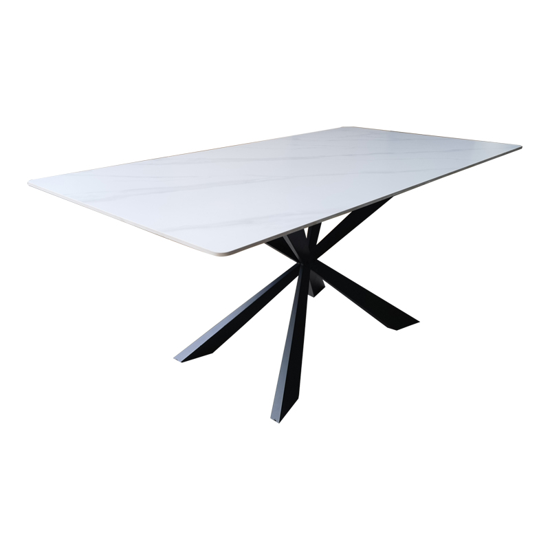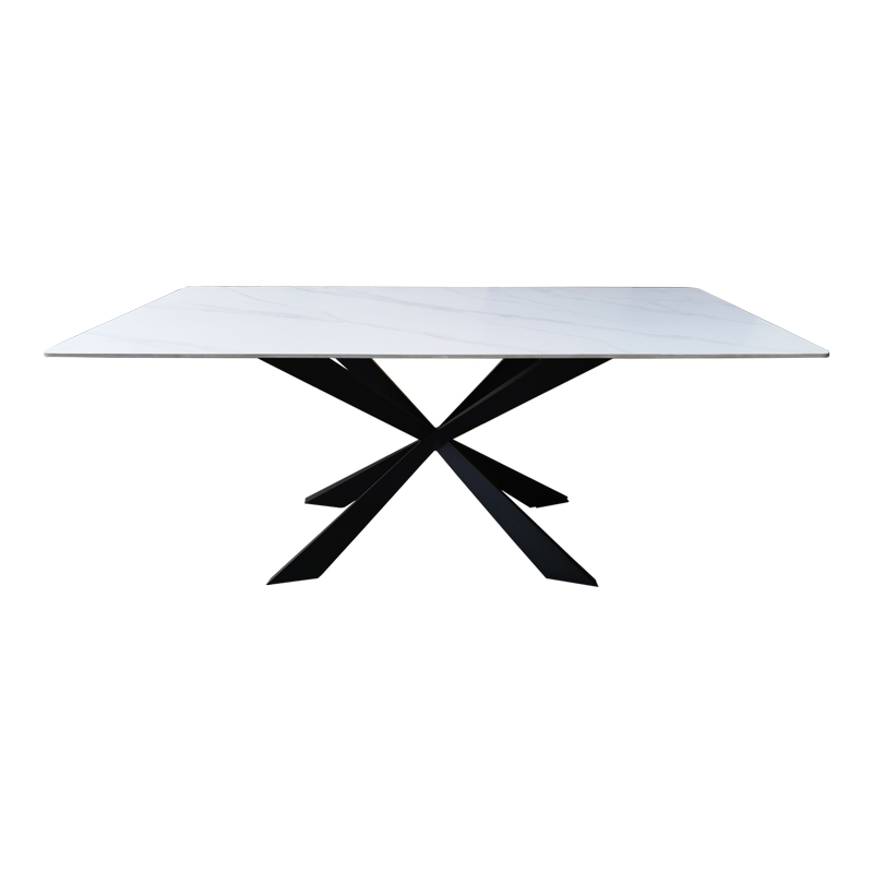 Αναζητάτε ένα statement έπιπλο που θα αναδείξει την τραπεζαρία ή τον επαγγελματικό σας χώρο; Αυτό το ορθογώνιο τραπέζι συνδυάζει άψογα τη φυσική ομορφιά της επιφάνειας με όψη μαρμάρου και τον τολμηρό, σύγχρονο σχεδιασμό της μαύρης μεταλλικής βάσης. Η μοναδική διασταυρούμενη βάση όχι μόνο προσφέρει εξαιρετική σταθερότητα, αλλά αποτελεί και ένα εντυπωσιακό αρχιτεκτονικό στοιχείο.