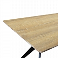 Δώστε στον χώρο σας έναν αέρα μοντέρνας κομψότητας με αυτό το εντυπωσιακό ορθογώνιο τραπέζι Ezali. Η επιφάνεια με την όψη ξύλου προσδίδει ζεστασιά και φυσικότητα, ενώ η τολμηρή, μαύρη μεταλλική βάση με τα διασταυρούμενα πόδια και την κεντρική ενίσχυση, αποτελεί ένα ξεχωριστό αρχιτεκτονικό στοιχείο που μαγνητίζει τα βλέμματα.