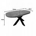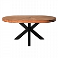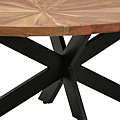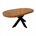 - Μοναδικός Σχεδιασμός: Η οβάλ επιφάνεια από μασίφ ξύλο, με το εντυπωσιακό ακτινωτό μοτίβο, προσδίδει μια αίσθηση ζεστασιάς και εκλεπτυσμένης ρουστίκ κομψότητας. Κάθε τραπέζι είναι μοναδικό, με τους φυσικούς κόκκους του ξύλου να αφηγούνται τη δική τους ιστορία.