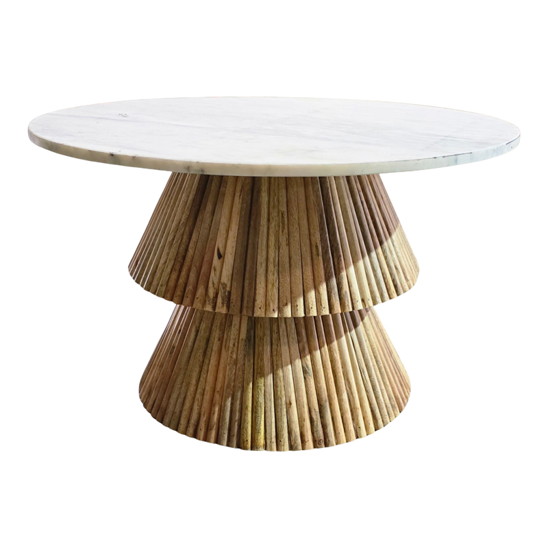 Τραπέζι σαλονιού Havai pakoworld μασίφ ξύλο mango σε φυσική απόχρωση κ λευκή επιφάνεια μαρμάρου Φ80x45εκ