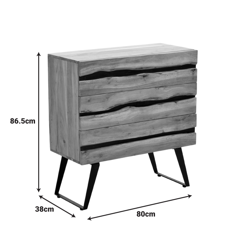 Συρταριέρα Imena pakoworld μασίφ ξύλο Acacia σε φυσικό απόχρωση με μαύρα μεταλλικά πόδια 80x38x86,5εκ