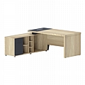 - Βοηθητικό γραφείο: Το γραφείο - αριστερη γωνία στηρίζεται σε ερμάριο που διαθέτει πολλαπλούς αποθηκευτικούς χώρους: Συρτάρι με κλειδαριά, ντουλάπι και ράφια. Κατασκευασμένα από μοριοσανίδα υψηλής ποιότητας με επένδυση μελαμίνης.