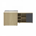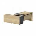 - Βοηθητικό γραφείο: Το γραφείο στη δεξιά πλευρά στηρίζεται σε ερμάριο που διαθέτει πολλαπλούς αποθηκευτικούς χώρους: Συρτάρι με κλειδαριά, ντουλάπι και ράφια. Κατασκευασμένα από μοριοσανίδα υψηλής ποιότητας με επένδυση μελαμίνης.