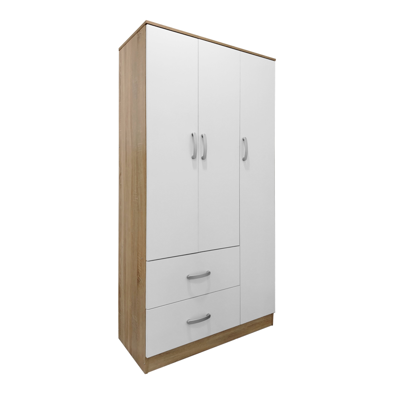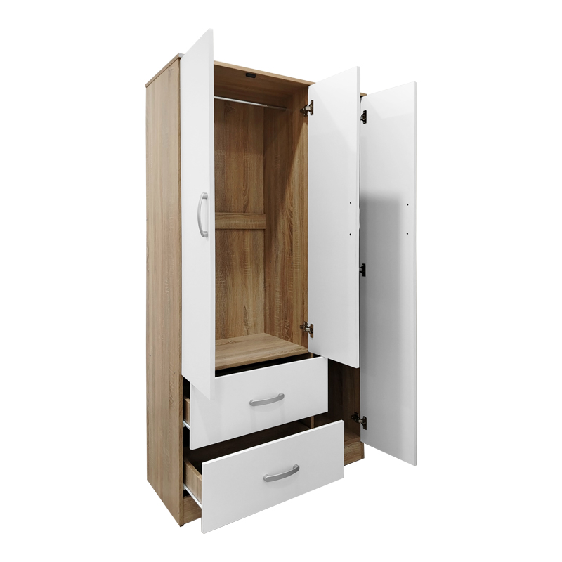 Ντουλάπα τρίφυλλη με 2 συρτάρια Lego pakoworld σε sonoma-λευκή απόχρωση 90x42x180εκ