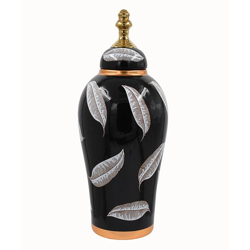 ΚΕΡΑΜΙΚΟ ΒΑΖΟ Fylliana FL7009 ΜΑΥΡΟ-ΛΕΥΚΟ-ΧΡΥΣΟ ΧΡΩΜΑ 17x41εκ