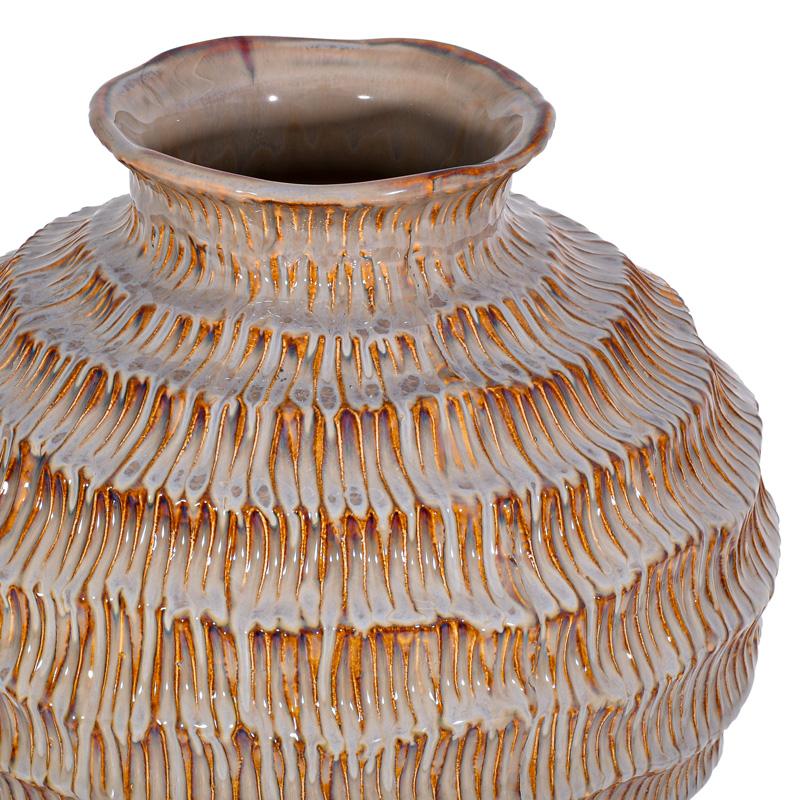 Για εσάς που αναζητάτε ένα κομψό, εντυπωσιακό διακοσμητικό στοιχείο που θα αναβαθμίσει κάθε χώρο του σπιτιού ή του επαγγελματικού σας περιβάλλοντος, το κεραμικό βάζο είναι η απόλυτη επιλογή. Με έντονες ανάγλυφες υφές και χειροποίητη αισθητική, προσφέρει μια μοναδική πινελιά πολυτέλειας και αυθεντικότητας. Το ιδιαίτερο design του το καθιστά ιδανικό είτε για τοποθέτηση στο πάτωμα, είτε πάνω σε τραπέζι, κομμό ή κονσόλα, δίνοντας ζωντάνια και καλλιτεχνική αίσθηση στον χώρο.