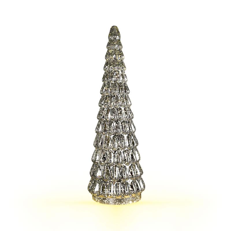 ΓΥΑΛΙΝΟ ΔΙΑΚΟΣΜΗΤΙΚΟ ΧΡΙΣΤΟΥΓΕΝΝΙΑΤΙΚΟ ΔΕΝΤΡΟ ΜΕ LED Fylliana FL002 ΑΣΗΜΙ ΧΡΩΜΑ 14x42εκ