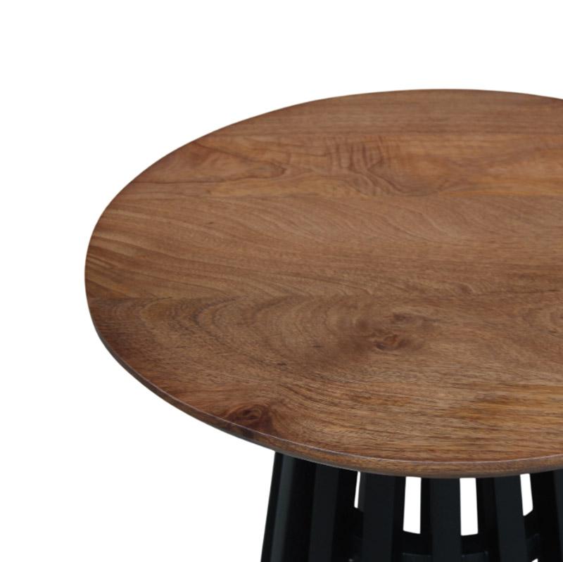 Κάθε επιφάνεια είναι μοναδική λόγω της φυσικής απόχρωσης και υφής του ξύλου mango. Το design συνδυάζει την κομψότητα του ξύλου με την αυστηρότητα του μετάλλου, δημιουργώντας ένα δυναμικό αλλά ταυτόχρονα φιλόξενο αποτέλεσμα. Τα πόδια έχουν αντικραδασμικά πέλματα για μεγαλύτερη σταθερότητα και προστασία του δαπέδου.