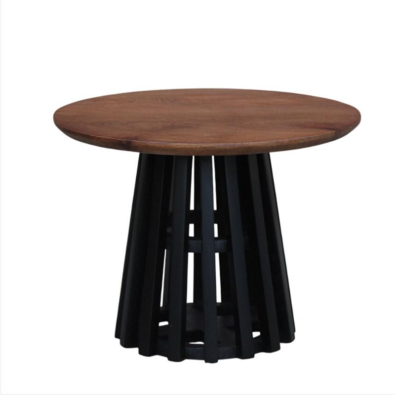Η επιφάνεια του τραπεζιού είναι κατασκευασμένη από υψηλής ποιότητας φυσικό ξύλο mango, γνωστό για τη σκληρότητα και την ανθεκτικότητά του, αλλά και για την όμορφη φυσική νερά του.Η βάση διάτρητη ξύλινη κατασκευή με γεωμετρικό σχέδιο!