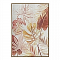 Το εντυπωσιακό έργο τέχνης Lulle απεικονίζει μια ποικιλία από τροπικά φύλλα και φυτά σε μια ζεστή, γήινη χρωματική παλέτα που περιλαμβάνει αποχρώσεις του τερακότα, του χρυσού, του ροζ και του μπεζ. Η τρισδιάστατη ψηφιακή εκτύπωση προσδίδει βάθος και ρεαλισμό στις λεπτομέρειες των φύλλων, δημιουργώντας μια αίσθηση ζωντάνιας και κίνησης.