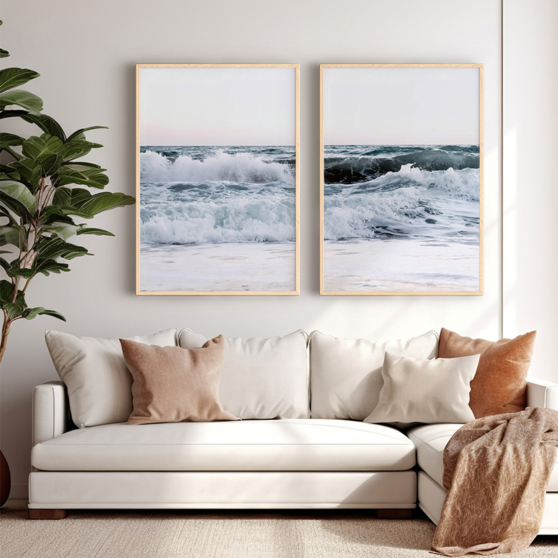 Αφήστε τη δύναμη του ωκεανού και την αλμυρή αύρα να γεμίσει τον χώρο σας με μια αίσθηση ελευθερίας. Το δίπτυχο Kaleria αναπαριστά την υποβλητική κίνηση των κυμάτων που σκάνε στην ακτή, με τον ορίζοντα να χάνεται στο λευκό του ουρανού. Κάθε φορά που εστιάζετε στους απαλούς τόνους του μπλε και του λευκού, νιώθετε μια αίσθηση απόδρασης, βαθιάς ηρεμίας και ανανέωσης. Το έργο συμβολίζει τη φυσική ομορφιά. Είναι οπτική υπενθύμιση ότι η πολυτέλεια βρίσκεται στο μεγαλείο της φύσης.