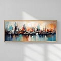 Εισάγετε τον δυναμισμό της πόλης στον χώρο σας με αυτόν τον εντυπωσιακό πίνακα Xenbo. Η αφηρημένη απεικόνιση ενός αστικού ορίζοντα με αντανακλάσεις στο νερό, τονίζεται από μια πλούσια παλέτα χρωμάτων που δημιουργούν μια ζεστή και ταυτόχρονα σύγχρονη ατμόσφαιρα.