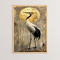 επιβλητικό γερανό σε ένα φόντο που κυριαρχείται από ένα χρυσό φεγγάρι