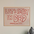 Δώστε έναν παιχνιδιάρικο και λυρικό τόνο στον χώρο σας, ιδανικό για το υπνοδωμάτιο, με τον ανατρεπτικό πίνακα Slepery. Ο πίνακας αυτός φέρει το μήνυμα "LET'S STAY IN BED" με έντονη, κόκκινη γραμματοσειρά πάνω σε ένα απαλό ροζ φόντο. Είναι το τέλειο statement piece για όσους αγαπούν τις στιγμές χαλάρωσης και την άνεση του σπιτιού.