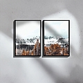 Εισάγετε στον χώρο σας την επιβλητική ομορφιά της φύσης, οριοθετημένη από το κομψό μαύρο frame. Το δίπτυχο Essen αναπαριστά ένα εντυπωσιακό ορεινό τοπίο με χιονισμένες κορυφές και δέντρα. Το μαύρο πλαίσιο λειτουργεί ως δραματικό περίγραμμα, ενισχύοντας τη φωτεινότητα του χιονιού και τη ζωντάνια των χρωμάτων και προσδίδοντας μια minimal, αυστηρή κομψότητα.