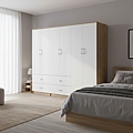 - Περιλαμβάνει εξι πόρτες, εσωτερικά φέρει ράγα για κρεμάστρες ενώ κάτω φέρει τεσσερα μεγάλα συρτάρια για την αποθήκευση ρούχων και αξεσουάρ.