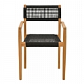 Πολυθρόνα Lengan pakoworld σκελετός teak ξύλο σε φυσική απόχρωση-μαύρο σχοινί 54x52x80εκ