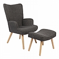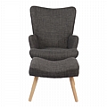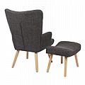 Πολυθρόνα-μπερζέρα με υποπόδιο Gerlina pakoworld ανθρακί ύφασμα με πόδι σε φυσική απόχρωση 71x64x94εκ