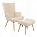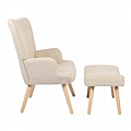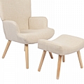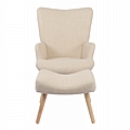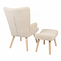 Πολυθρόνα-μπερζέρα με υποπόδιο Gerlina pakoworld κρεμ ύφασμα με πόδι σε φυσική απόχρωση 71x64x94εκ