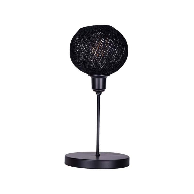Αυτό το επιτραπέζιο φωτιστικό είναι ένα πραγματικό έργο τέχνης που θα μεταμορφώσει κάθε γωνιά του σπιτιού σας. Ο συνδυασμός της λιτής, μαύρης βάσης με το χειροποίητο αμπαζούρ σε σχήμα σφαίρας, από πλέξη pp, δημιουργεί ένα εντυπωσιακό αποτέλεσμα. Όταν ανάβει, η πλέξη ρίχνει ζεστά, παιχνιδιάρικα σχέδια στους τοίχους, χαρίζοντας μια μοναδική, χαλαρωτική ατμόσφαιρα.