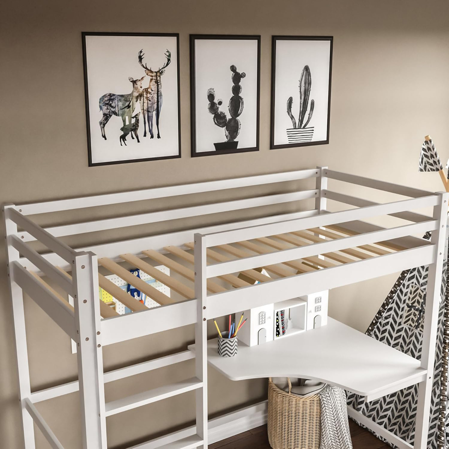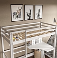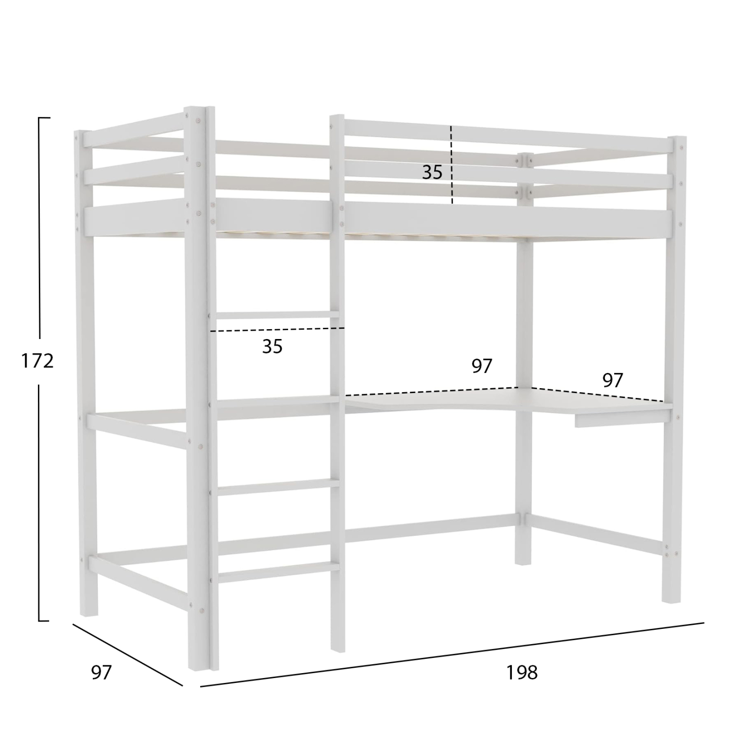 Σας παρουσιάζουμε το καινούργιο παιδικό κρεβάτι-κουκέτα FB9702.03 σε διάσταση για μονό στρώμα 90x190 εκ, και αποτελεί μια άριστης ποιότητας, μοντέρνα και ασφαλή επιλογή για το παιδικό δωμάτιο. Είναι ξύλινο σε ΛΕΥΚΟ χρώμα βαμμένο με αβλαβές βερνίκι με βάση το νερό και μη τοξικό, ιδανικό για παιδιά. Το στρώμα τοποθετείται σε τάβλες κατασκευασμένες από ξυλεία κόντρα πλακέ. Η πρόσβαση στο κρεβάτι γίνεται με πρακτική σκάλα, ενώ στο κάτω μέρος υπάρχει γωνιακό γραφείο. Μια ιδανική πρόταση για δωμάτια με περιορισμένο χώρο.