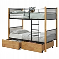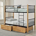 Σας παρουσιάζουμε τo κρεβάτι-κουκέτα FB921119.02 σε συνδυασμό ξύλου- μετάλλου για μονά στρώματα 90x190εκ. Τα 4 πόδια-κολώνες του κρεβατιού είναι τα ξύλινα κομμάτια της σύνθεσης σε χρώμα ΟΞΙΑΣ, ενώ το κεφαλάρι, το ποδαρικό, τα πλαϊνά, η σκάλα, τα κάγκελα, και οι τάβλες στήριξης του στρώματος είναι όλα μεταλλικά σε ΜΑΥΡΟ χρώμα. Τα κεφαλάρια μάλιστα αποτελούνται από μεταλλική «σίτα», όπως και τα ποδαρικά. Η πρόσβαση στο επάνω κρεβάτι γίνεται με μια μεταλλική σκάλα που τοποθετείται βιδωτή στον σκελετό. Στο επάνω κρεβάτι υπάρχουν πλαϊνά προστατευτικά κάγκελα που προσφέρουν ασφάλεια από πτώσεις. Η πρακτικότητά του τονίζεται ακόμα περισσότερο χάρη στα δύο συρτάρια δαπέδου με ροδάκια, που τοποθετούνται κάτω από το κρεβάτι, και διαθέτουν όμορφη πρόσοψη μελαμίνης σε χρώμα παρόμοιο με τον σκελετό του κρεβατιού. Ιδανικό τόσο για το σπίτι, όσο και για επαγγελματικούς χώρους, όπως AirBnB, ξενοδοχεία κτλ.