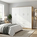 - Περιλαμβάνει πέντε πόρτες, εσωτερικά φέρει ράγα για κρεμάστρες και ράφια ενώ κάτω φέρει τέσσερα μεγάλα συρτάρια για την αποθήκευση ρούχων και αξεσουάρ.