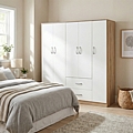 - Περιλαμβάνει πέντε πόρτες, εσωτερικά φέρει ράγα για κρεμάστρες και ράφια ενώ κάτω φέρει δυο μεγάλα συρτάρια για την αποθήκευση ρούχων και αξεσουάρ.