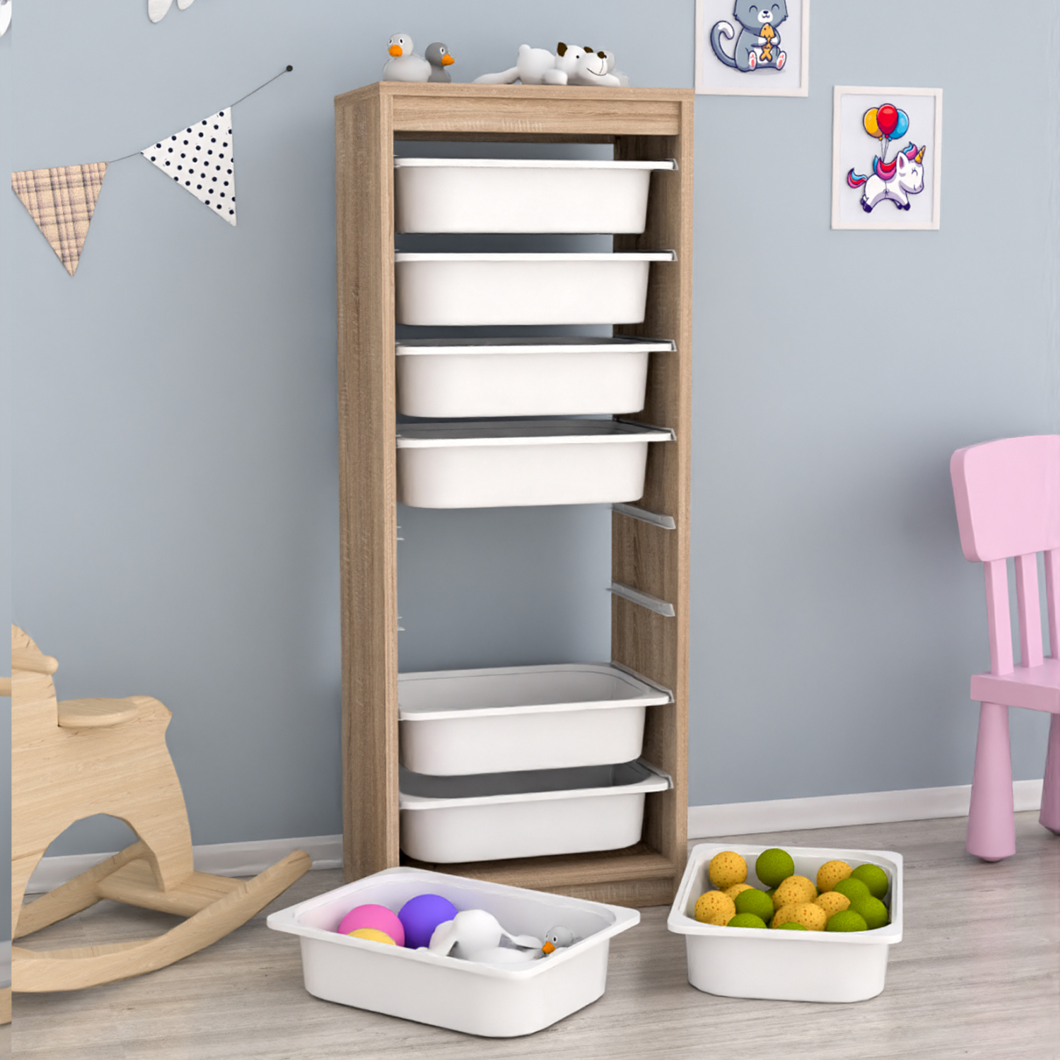 Η FB918201.03 είναι μια ψηλή συρταριέρα με πλαίσιο από μελαμίνη σε χρώμα SONAMA, με 8 ΛΕΥΚΑ συρτάρια από πολυαιθυλένιο (πλαστικό). Ιδανική συρταριέρα για την καλύτερη οργάνωση του παιδικού δωματίου.