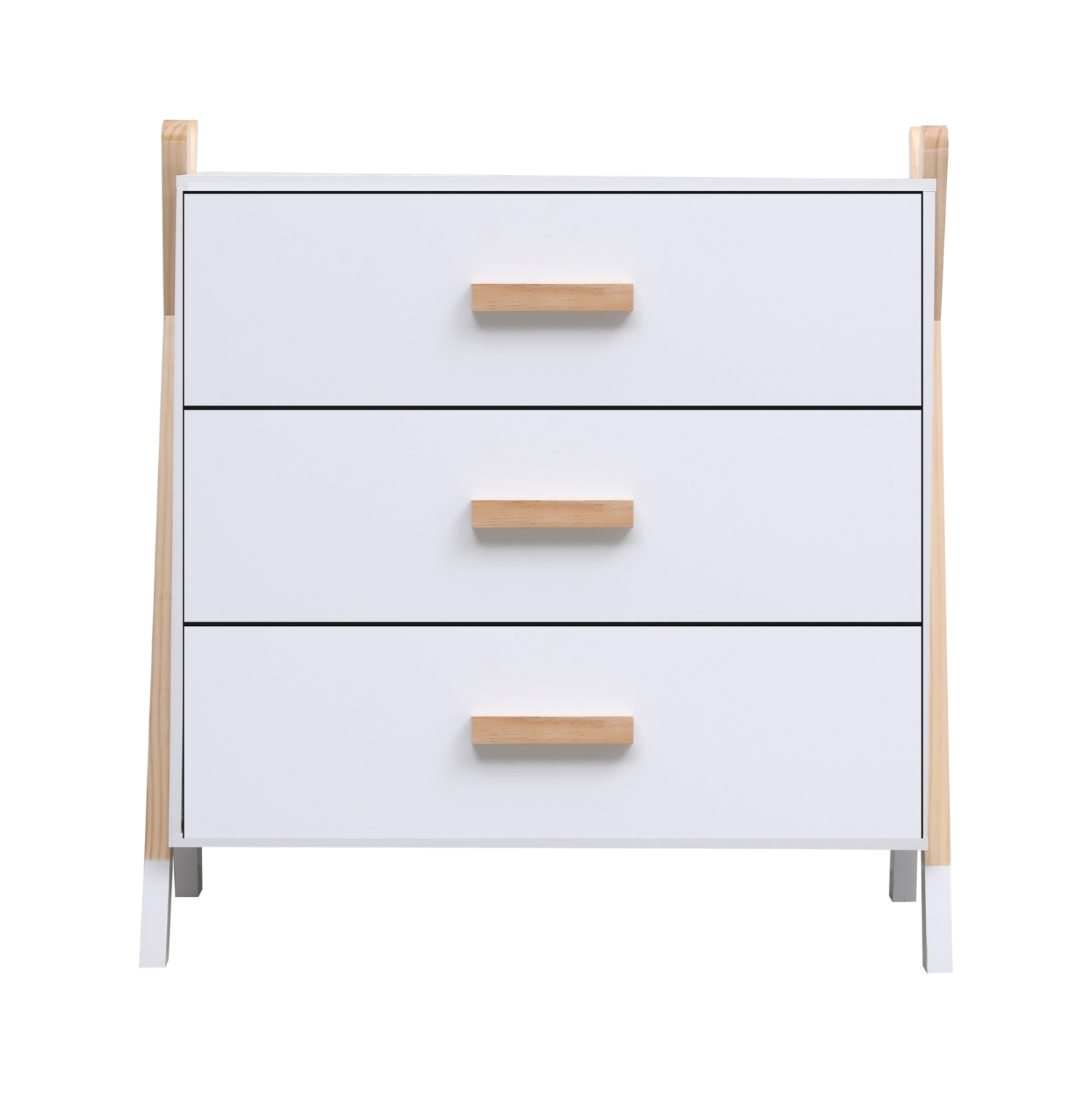 Η FB92493.03 είναι μια καινούργια παιδική συρταριέρα σε ΛΕΥΚΟ χρώμα. Είναι βολική σε διαστάσεις και διαθέτει 3 συρτάρια. Στηρίζεται σε δύο ξύλινα χιαστί πόδια σε ΦΥΣΙΚΟ χρώμα ξύλου στις δύο πλευρές. Είναι βαμμένη με αβλαβές μη τοξικό βερνίκι με βάση το νερό, ιδανικό για παιδιά.