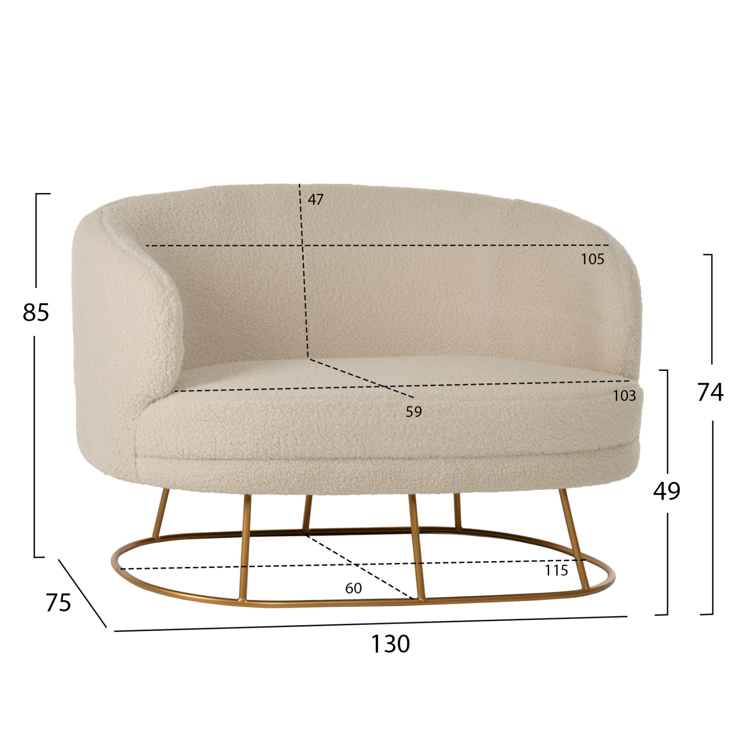 ΚΑΝΑΠΕΣ 2ΘΕΣΙΟΣ FB98492.20 ΕΚΡΟΥ ΜΠΟΥΚΛΕ ΥΦΑΣΜΑ ΜΕ ΧΡΥΣΗ ΒΑΣΗ 130x75x85Y εκ.