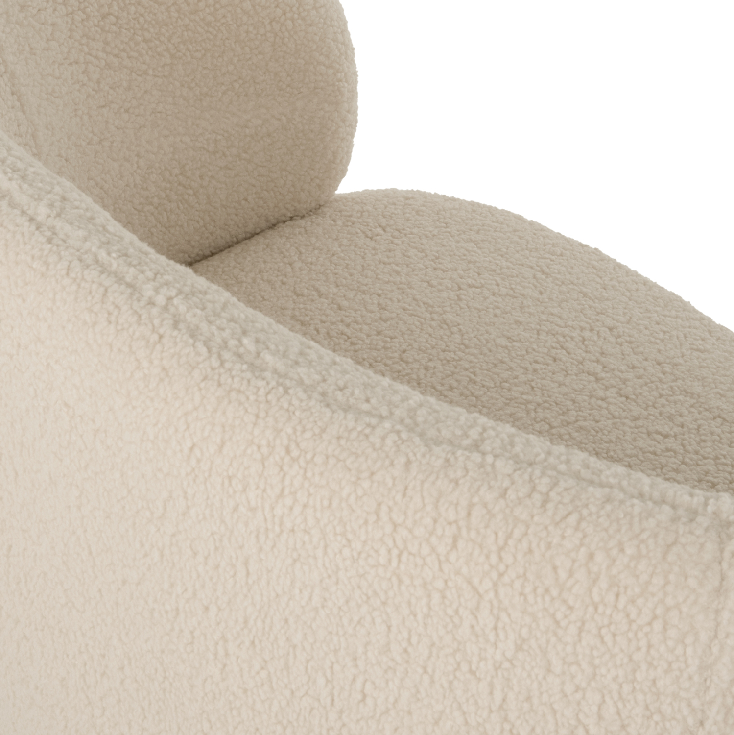 Η επένδυση του καναπέ έχει γίνει εξολοκλήρου με εξαιρετικής ποιότητας μπουκλέ ύφασμα. Μπουκλέ λέγεται οποιοδήποτε ύφασμα που έχει κόμπο-μπούκλα στην ύφανσή του. Κατασκευάζεται από σχεδόν όλες τις πρώτες ύλες (αν και συνήθως είναι συνθετικό) με ειδικές κλωστές με κόμπους ή πολύ στριμμένα νήματα, έτσι ώστε να έχει σγουρή επιφάνεια. Δεν τσαλακώνει και μπορεί να είναι μονόχρωμο, μελανζέ ,καρώ ή τουιντ.
