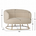 Ο 2-θέσιος καναπές FB98492.20 είναι μια μοντέρνα και στιλάτη πρόταση που θα αφήσει το στίγμα της σε όποιο σαλόνι κι αν τοποθετηθεί. Το σχεδόν οβάλ του σχήμα με την ανάλογη μεταλλική της βάση, σε συνδυασμό με την χαμηλή πλάτη και τα ψηλά μπράτσα, χωράνε 2 άτομα και προσφέρουν άνεση και στυλ. Το ουδέτερο ΕΚΡΟΥ χρώμα με το χρυσό της βάσης μπορεί να συνδυαστεί με πληθώρα άλλων χρωμάτων στην διακόσμηση του σαλονιού.