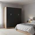 - Περιλαμβάνει τεσσερις πόρτες, εσωτερικά φέρει ράγα για κρεμάστρες και ράφια για την αποθήκευση ρούχων και αξεσουάρ.