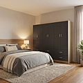 - Περιλαμβάνει εξι πόρτες, εσωτερικά φέρει ράγα για κρεμάστρες ενώ κάτω φέρει εξι μεγάλα συρτάρια για την αποθήκευση ρούχων και αξεσουάρ.
