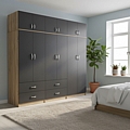 - Περιλαμβάνει εξι πόρτες, εσωτερικά φέρει ράγα για κρεμάστρες ενώ κάτω φέρει τεσσερα μεγάλα συρτάρια για την αποθήκευση ρούχων και αξεσουάρ και με την προσθήκη παταριού, προσφέρει έξτρα αποθήκευση για ρούχα, λευκά είδη αλλά και εποχιακά αντικείμενα.