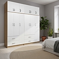 - Περιλαμβάνει έξι πόρτες, εσωτερικά φέρει ράγα για κρεμάστρες και ράφια ενώ κάτω φέρει τέσσερα μεγάλα συρτάρια για την αποθήκευση ρούχων και αξεσουάρ και με την προσθήκη παταριού, προσφέρει έξτρα αποθήκευση για ρούχα, λευκά είδη αλλά και εποχιακά αντικείμενα.